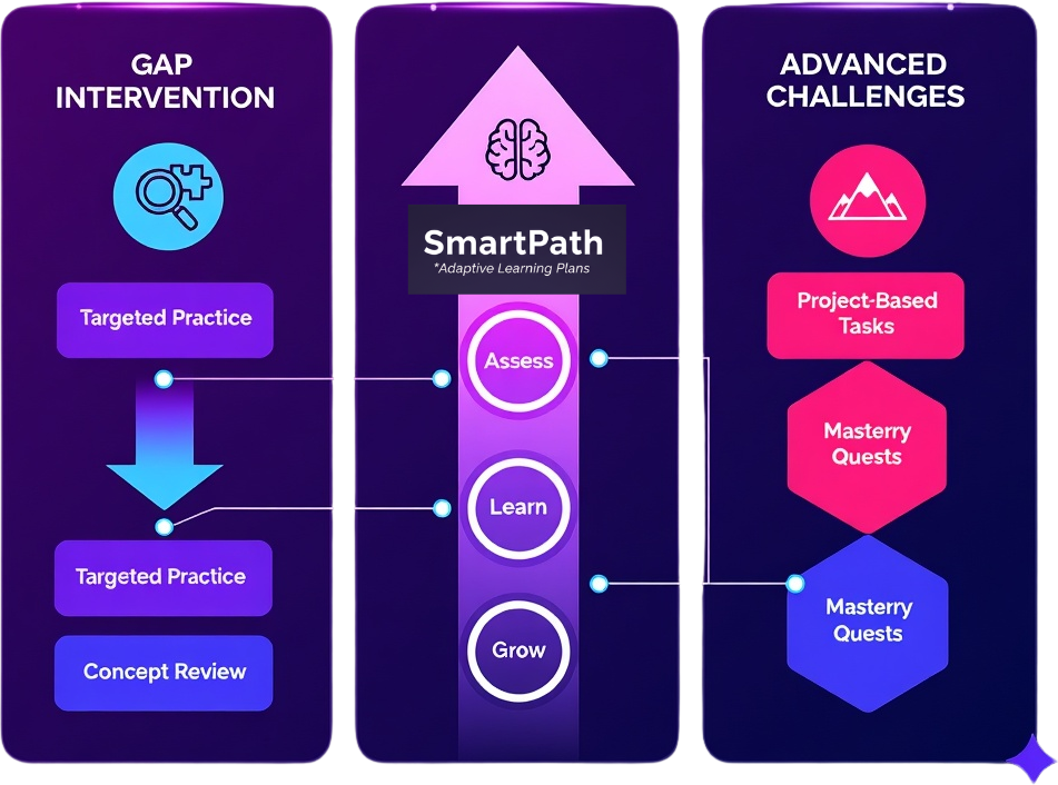 SmartPath provides progress tracking and individual learning plans thoughtfully tailored for each child, ensuring every student follows their own unique learning journey.